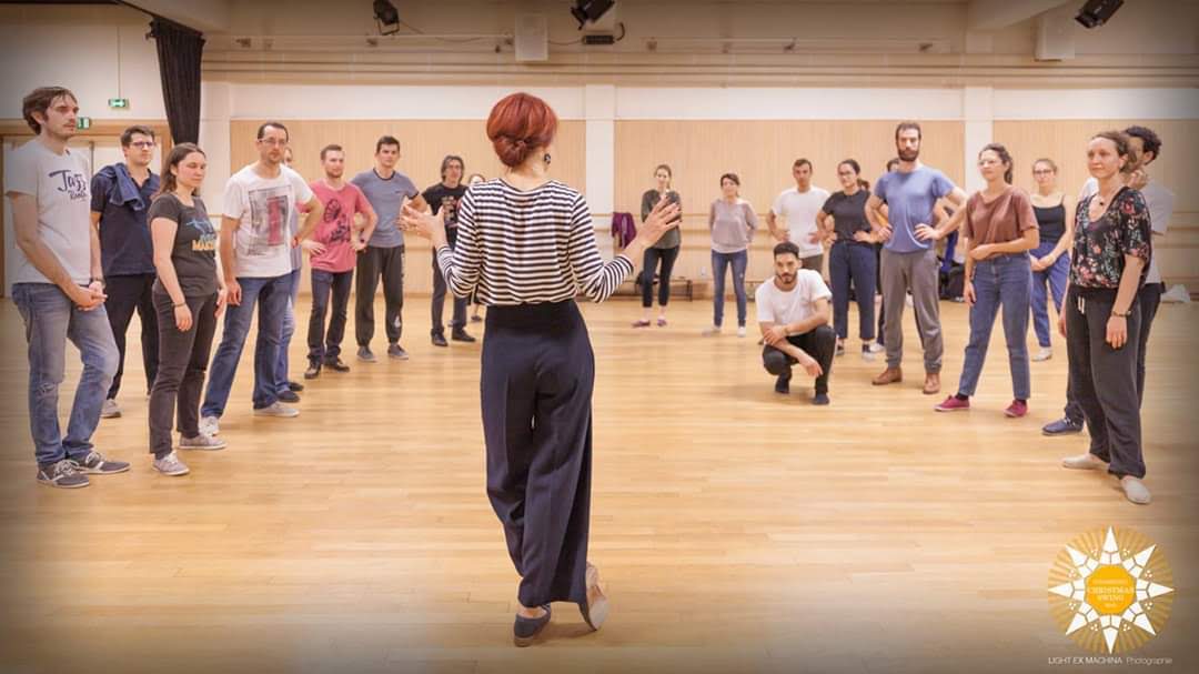 For the second block, it all depends on the theme of my class. It might be a movement concept, or an improvisation idea. Here’s where we focus: a bit of explanation, some targeted drills—starting slow and gradually raising the involvement of the body.